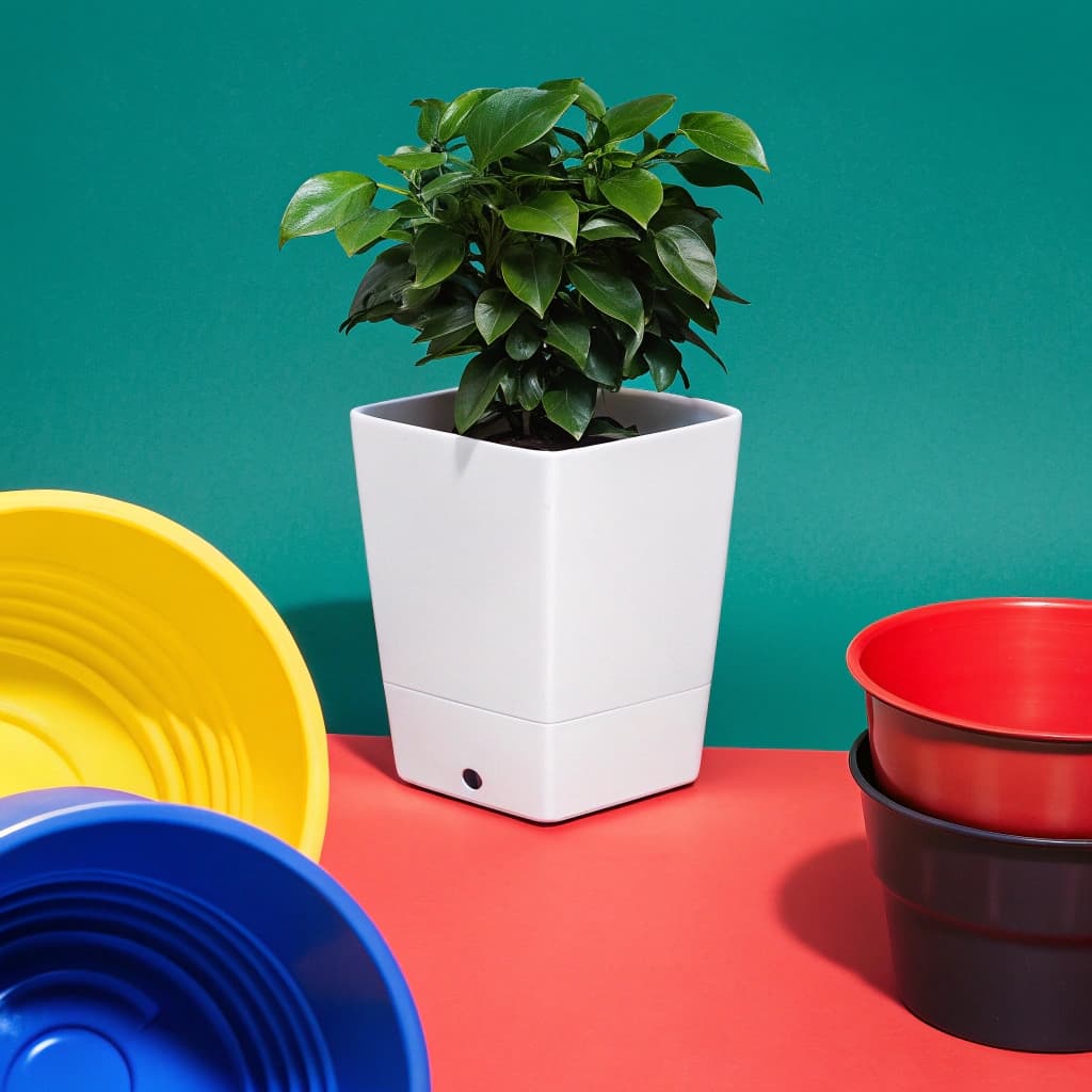Современный горшок с автополивом подходит для комнатных и уличных растений. Изготовлен из прочного пластика, устойчивого к УФ и морозу. Система автополива позволяет растениям получать влагу до 12 дней.